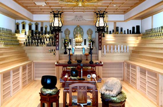 静かな時間が流れる永代供養のお位牌堂です。木の香りが立ちこめ、本尊に見守られる長閑な空間になっています。